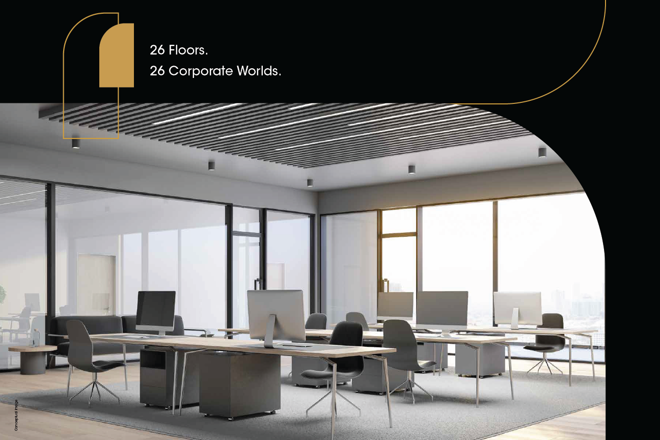 Office Spaces: Choose from 450+ offices, 516–1,470 sq.ft, 20 offices per floor for all business sizes. Large 17,000 sq.ft office available for enterprise needs.